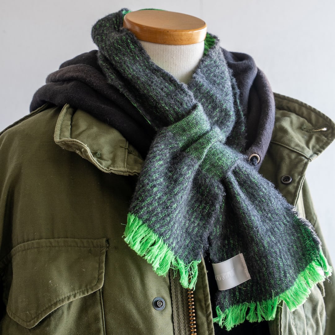 【NEONマフラー **ネオングリーン×チャコールグレー**】
